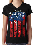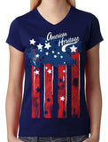 Faded American Heritage Flag Junior Ladies V-neck T-shirt