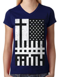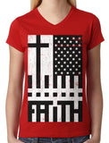 Faith Cross American Flag Junior Ladies V-neck T-shirt