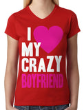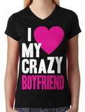 I Love my Crazy Boyfriend Junior Ladies V-neck T-shirt